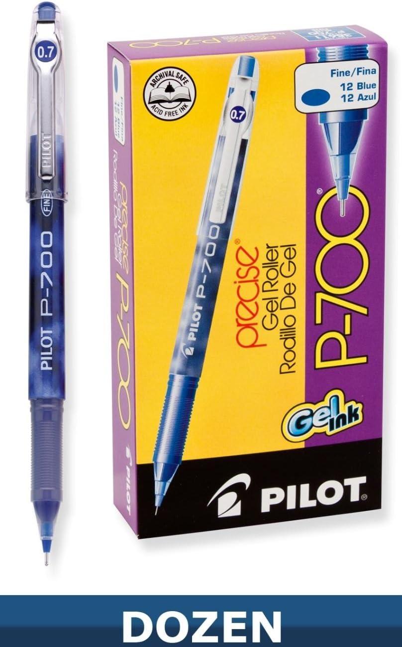 PILOT, Precise P-700 Gel Ink Rolling Ball Stick Pens, Marbled Barrel, Fine Point 0.7 mm, Black, Pack of 12(Blue)