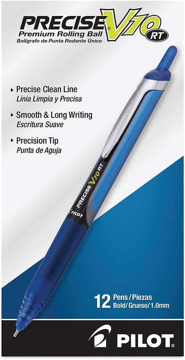 Pilot, Precise V10 RT Refillable & Retractable Rolling Ball Pens, Bold Point 1 mm, Blue, Pack of 12(Blue)