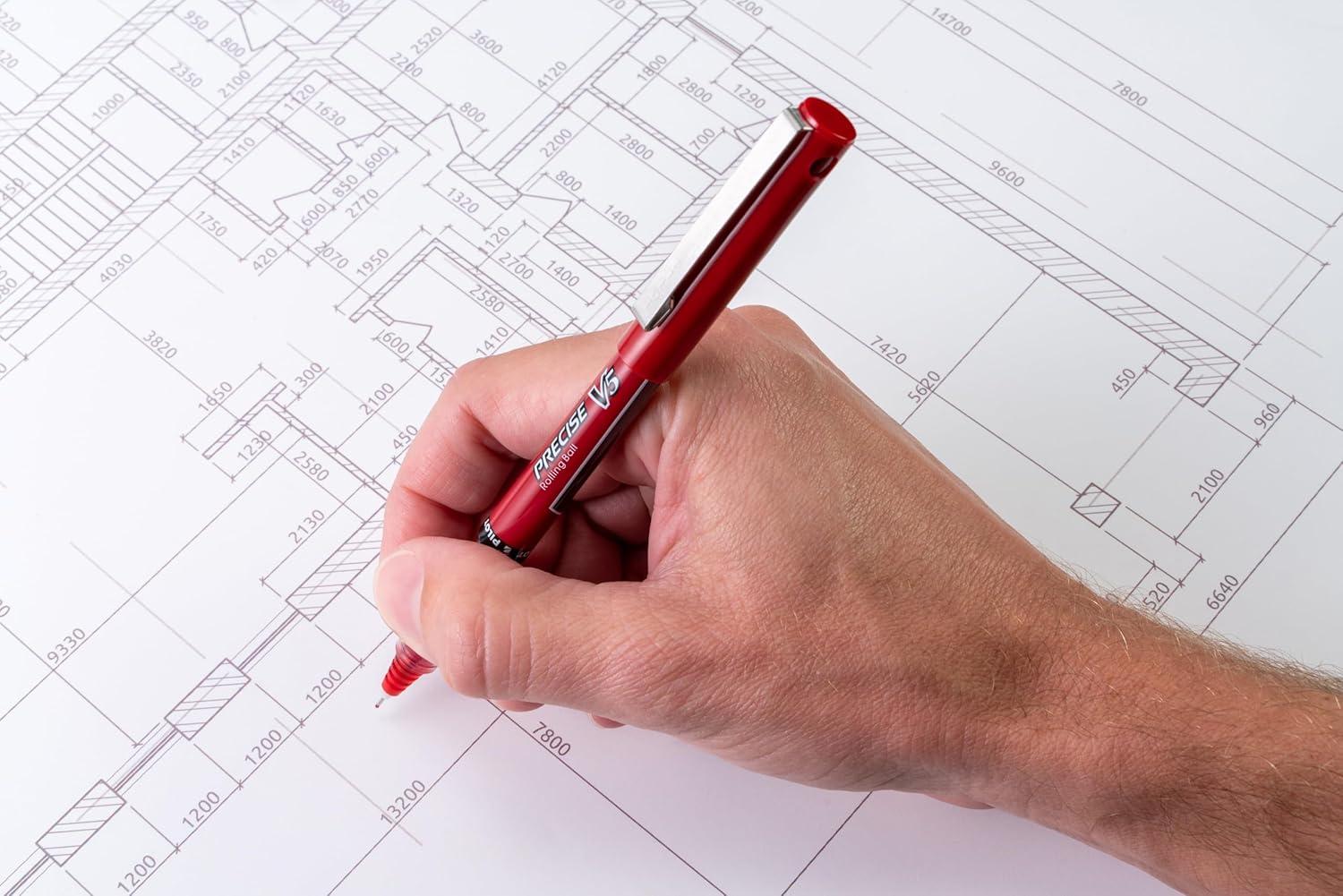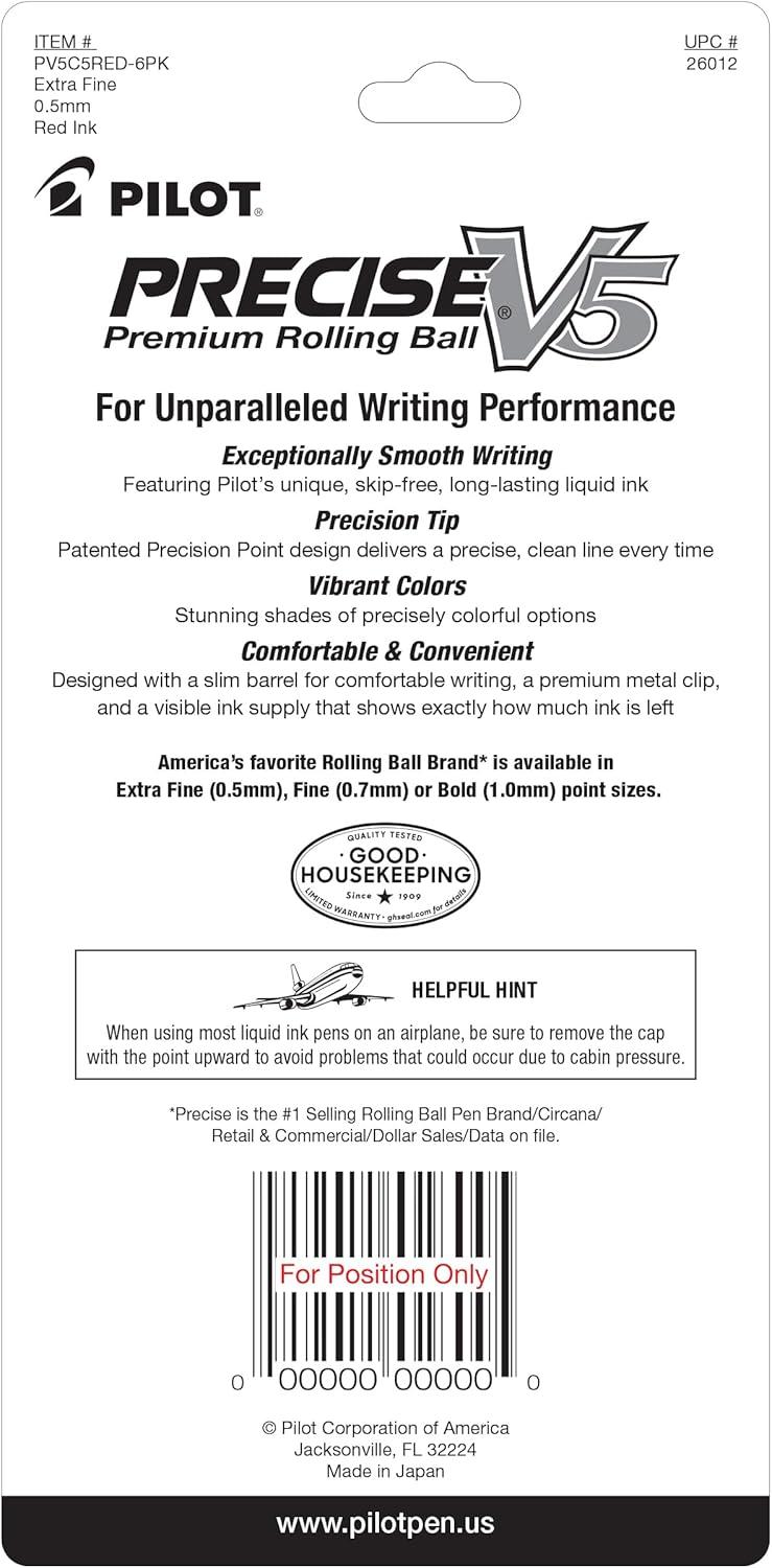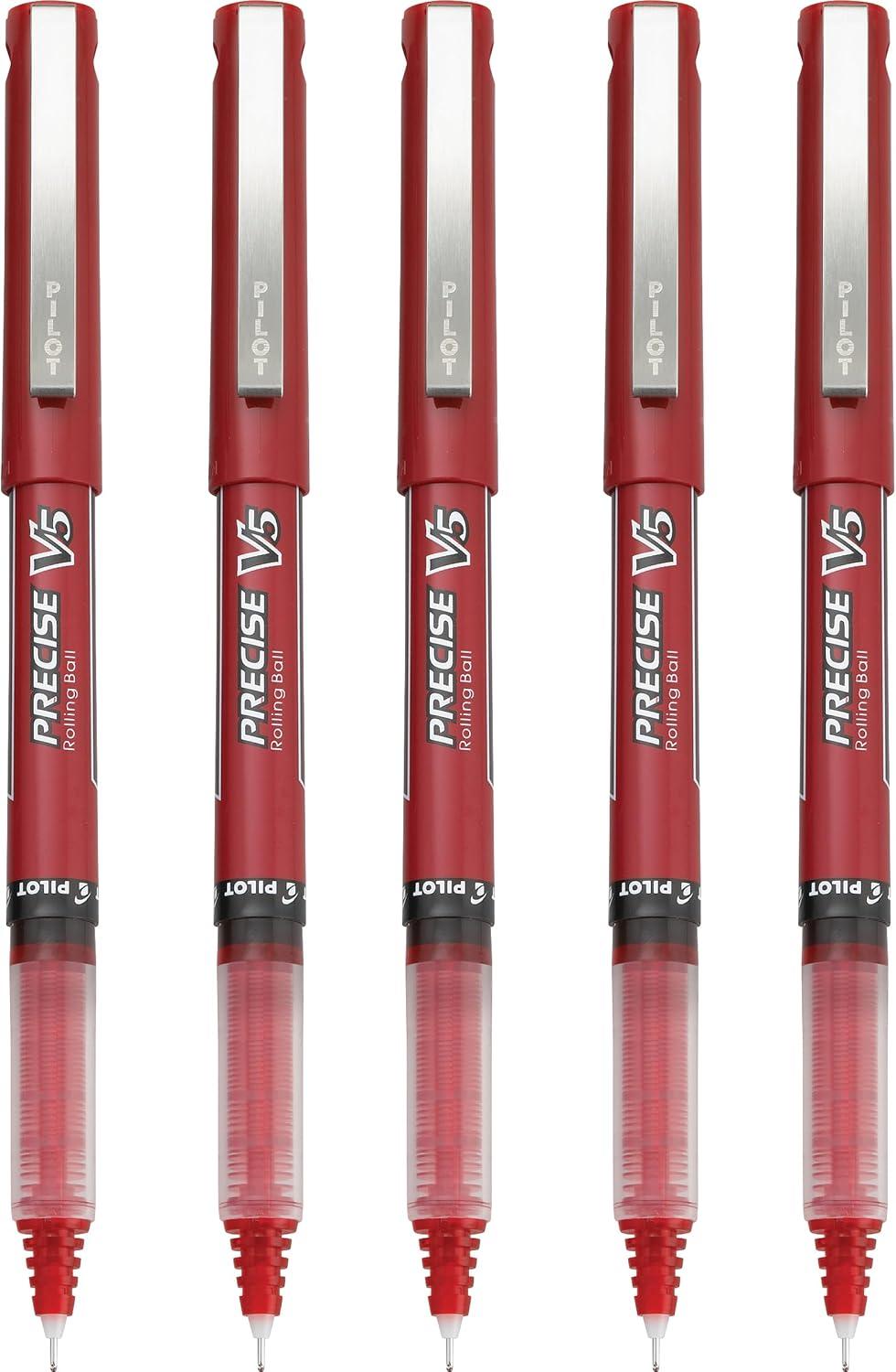 Pilot Precise V5 Rollerball Pens, Extra Fine Point 0.5 mm Black Pens, Black, Pack of 5 – Ideal for School, Journaling & Office Writing(Red)