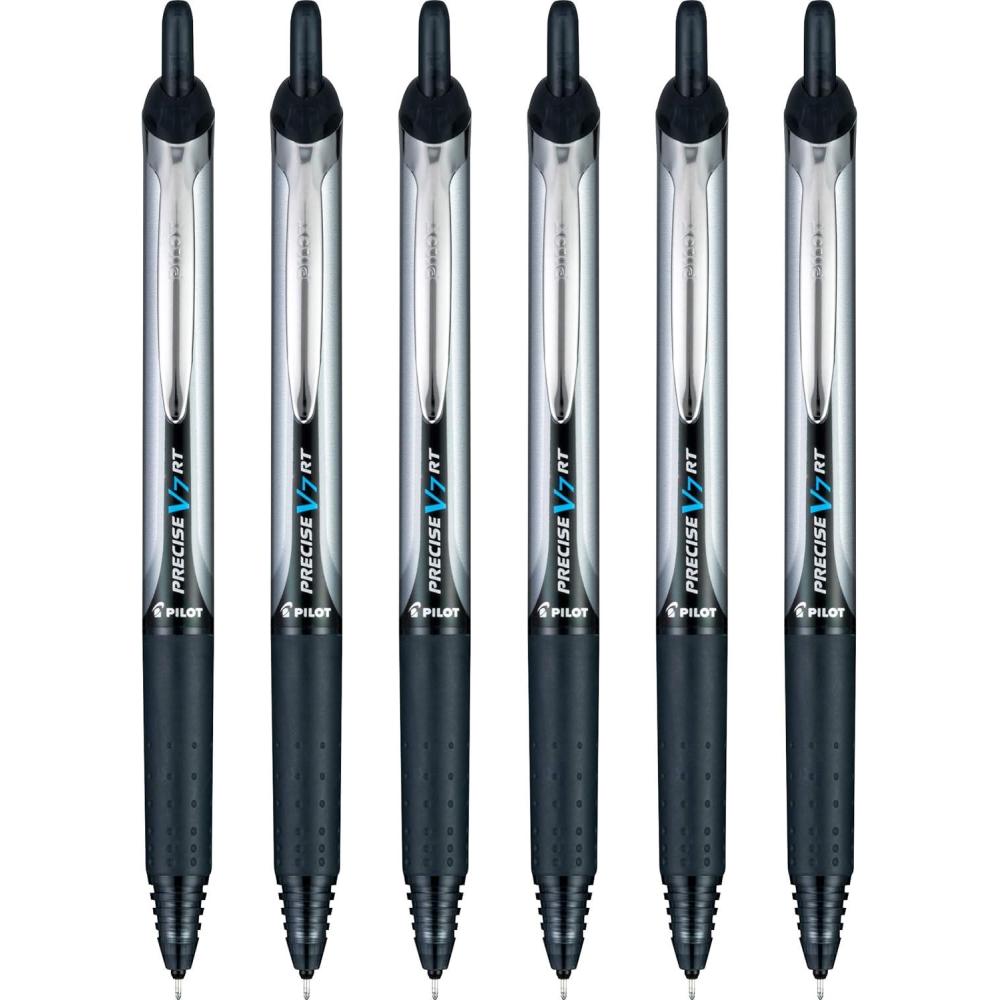 Pilot Precise V7 RT Refillable & Retractable Liquid Ink Rollerball Pens, Black Ink Pens, Fine Point (0.7 mm), 6-Pack – Ideal for School, Journaling, and Office Writing(Black)