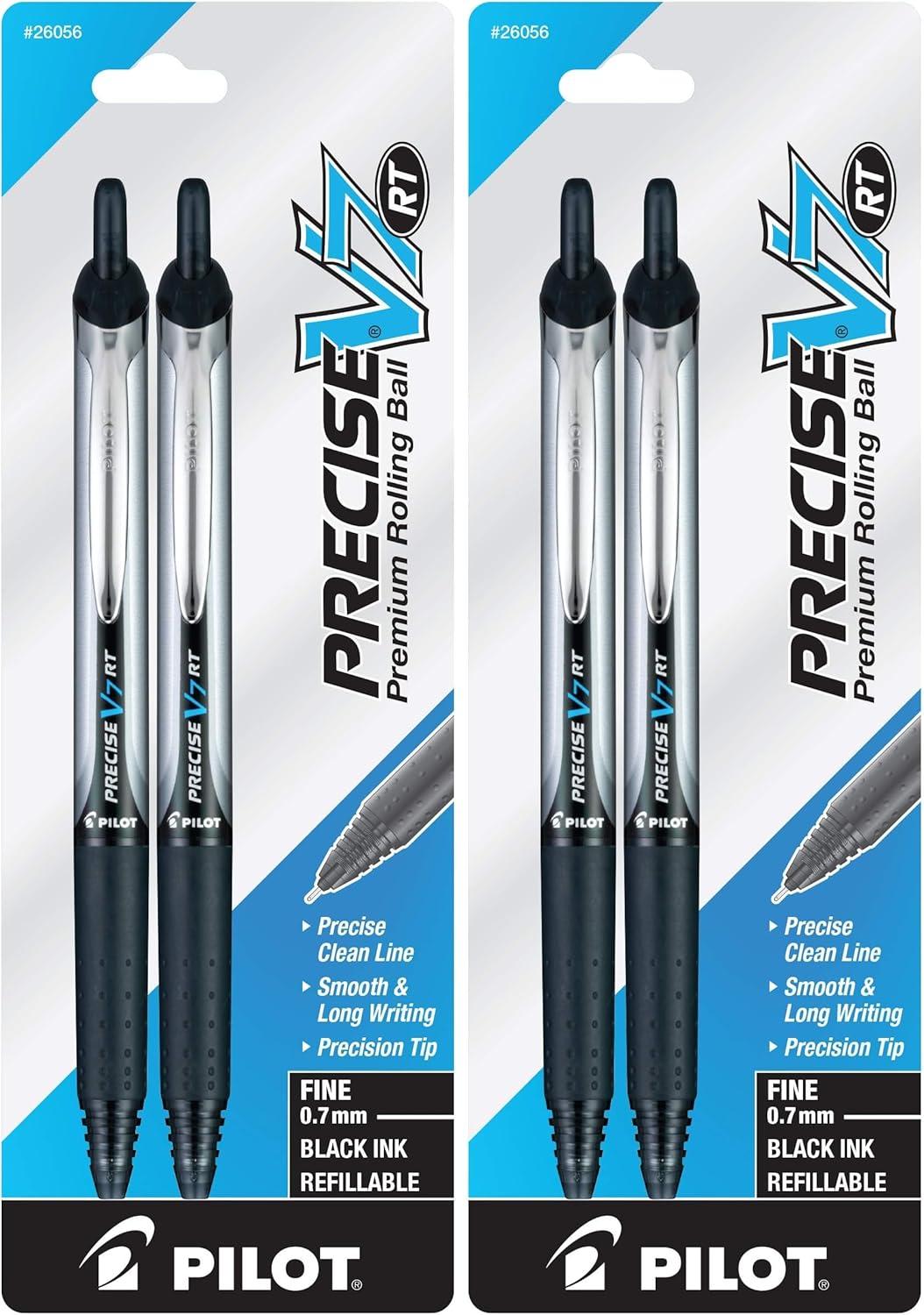 PILOT Precise V7 RT Refillable & Retractable Liquid Ink Rolling Ball Pens, Fine Point (0.7mm) Black Ink, 2-Pack (26056)(Black)